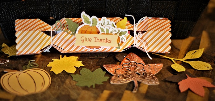 Kelly from “Greetings by Kelly” made the Thanksgiving Cracker in the photo above. Such a talented person! She has a website showcasing all her hand-made greeting cards and gift supplies that you can visit here.