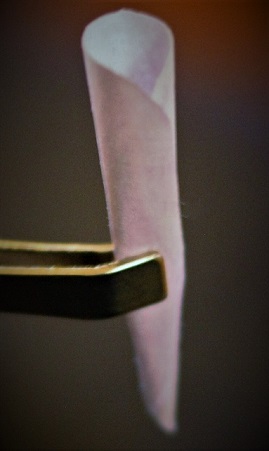 The remainder of this petal round will be three and a half petals. This will become your sixth (and last) petal layer. Glue one edge of the petal to the other, slightly overlapping it. Leave it to dry.