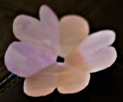 With the remaining three heart shapes. Glue one side to the other. Curl petal tops. This will become your fifth petal layer.