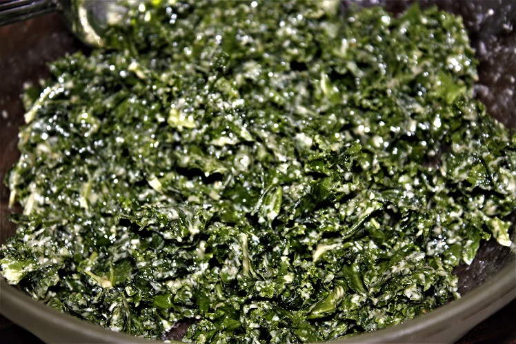 Step one: Prepare the kale. (wash, dry and cut)