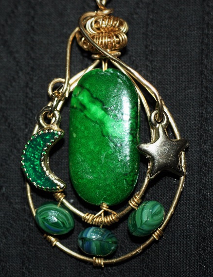Just finished this pendant. I am still trying to get the hang of working with wire. I just wish my eyesight was better. Thank you to whoever invented magnifying glasses!